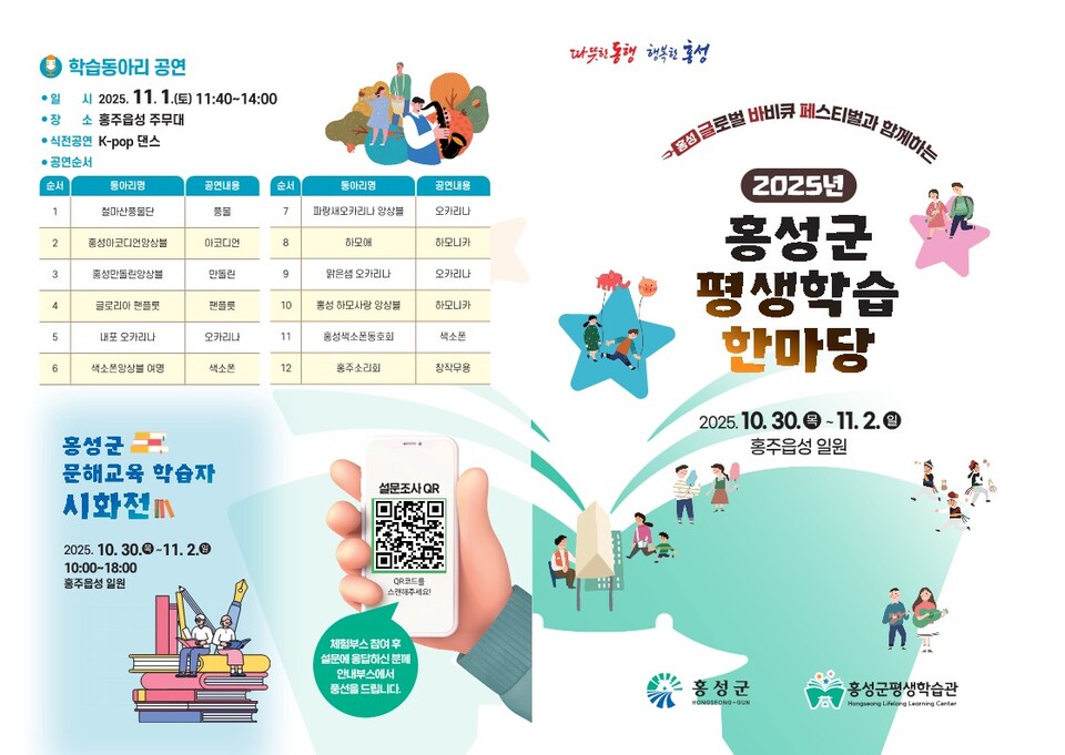이용록 홍성군수는 “평생학습 한마당과 홍성글로벌바비큐페스티벌을 통해 배움과 문화가 어우러진 축제의 장이 열리게 됐다”며 “군민이 함께 배우고 즐기며 성장하는 경험이 지역의 활력으로 이어지길 바란다”고 말했다.