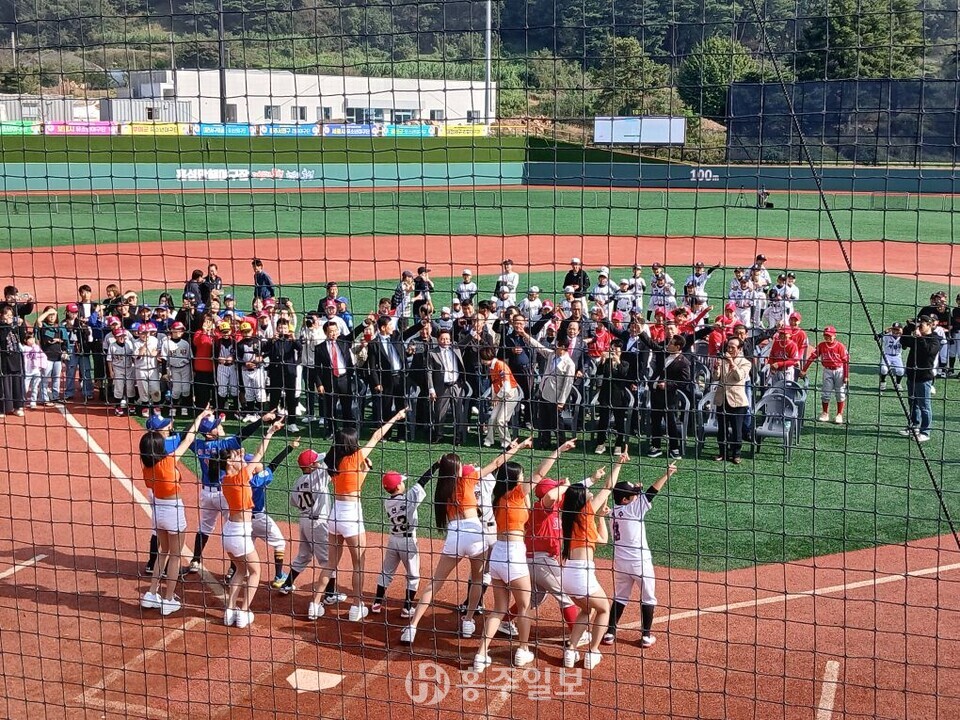 홍성만해야구장에서 열린 ‘제1회 결성면배 유소년 야구대회(U-12)’가 19일 뜨거운 열기 속에 성공적으로 개막했다.