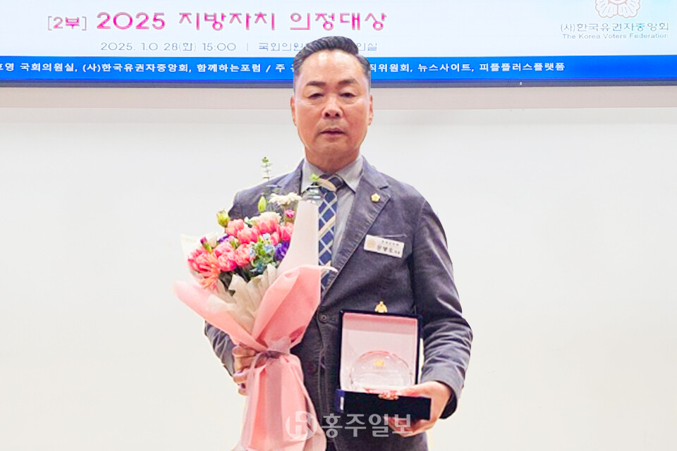 [홍주일보 홍성=한기원 기자] 문병오 홍성군의회 의원<사진>이 지난 28일 서울 여의도 국회의원회관 대회의실에서 열린 ‘2025 지방자치 의정대상’ 시상식에서 의정(행정)부문 수상자로 선정되는 영예를 안았다.