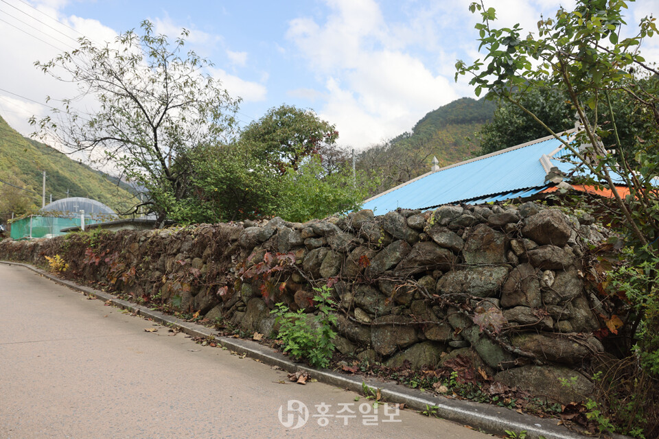 돌담은 생활과 자연의 조화를 이루는 방식으로 집과 밭, 길을 구분하는 경계 역할을 하면서도 마을의 풍경을 아늑하게 빚어내고 있다. 돌담의 돌과 돌 사이사이에 자라는 풀과 이끼, 그리고 햇살이 어우러져 매우 따뜻한 산골의 정취를 느낄 수 있다. 제법 큰 자연석 강돌을 이용해서는 계곡이나 집터의 축대도 쌓았고 일부는 밭담으로 쌓은 모습도 보인다.