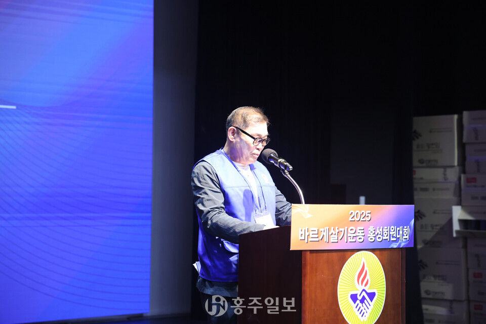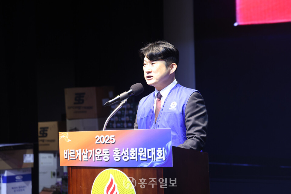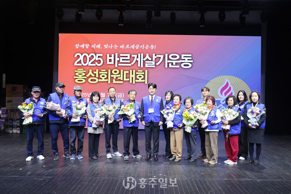 [홍주일보 홍성=김용환 인턴기자] 바르게살기운동 홍성군협의회(회장 전헌수)는 지난 8일 청운대학교 신애관에서 ‘함께할 미래, 빛나는 바르게살기운동’을 슬로건으로 ‘2025 바르게살기운동 홍성군회원대회’를 성황리에 마쳤다.