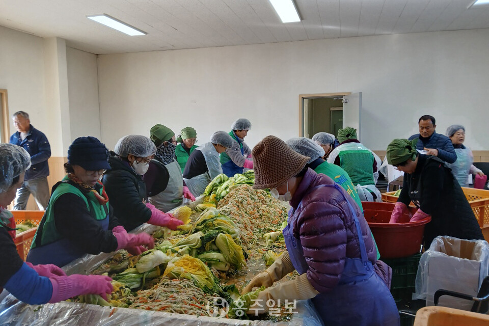 홍성군 결성면 새마을부녀회(회장 이민숙)는 지난 28일 ‘2025 사랑의 김장나눔 행사’를 개최하고, 매운 음식을 드시기 어려운 어르신들을 배려해 정성으로 담근 ‘백김치’를 관내 취약계층과 어르신들에게 전달했다.