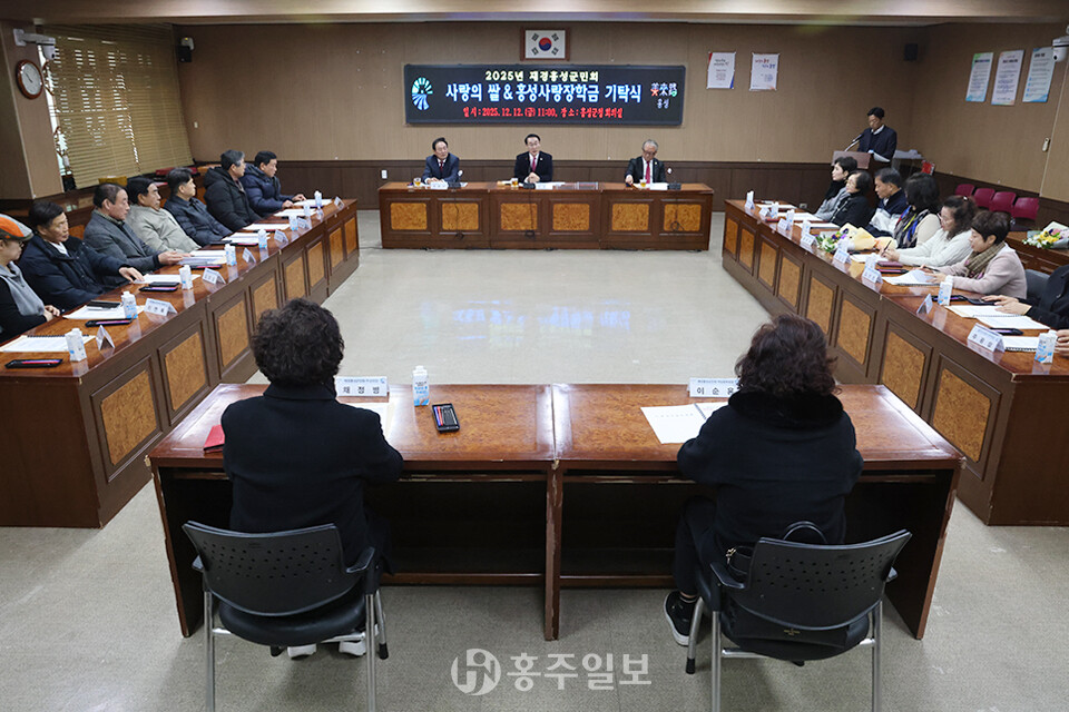 홍성군은 지난 12일 군청 2층 회의실에서 ‘2025년 재경홍성군민회 사랑의 쌀 및 홍성사랑장학금 기탁식’을 열었다. 이날 행사에는 이용록 홍성군수를 비롯해 재경홍성군민회 이상수 회장과 복봉규 명예회장 등 임원진과 군청 관계자 등 30여 명이 참석했다.