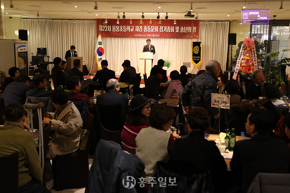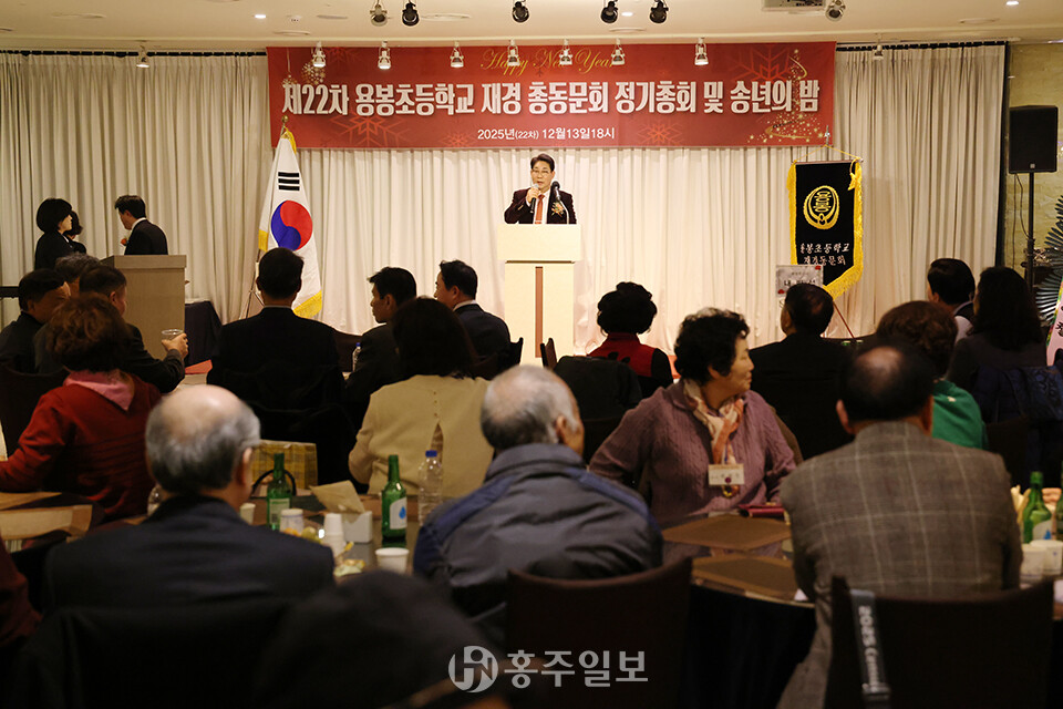 [홍주일보 서울=한기원 기자] 재경용봉초등학교총동문회(이임회장 이영철·취임회장 임효진)가 한 해를 마무리하며 ‘제22차 정기총회와 송년의 밤’ 행사를 열고, 회장 이·취임식을 통해 새로운 집행부 출범을 알렸다.
