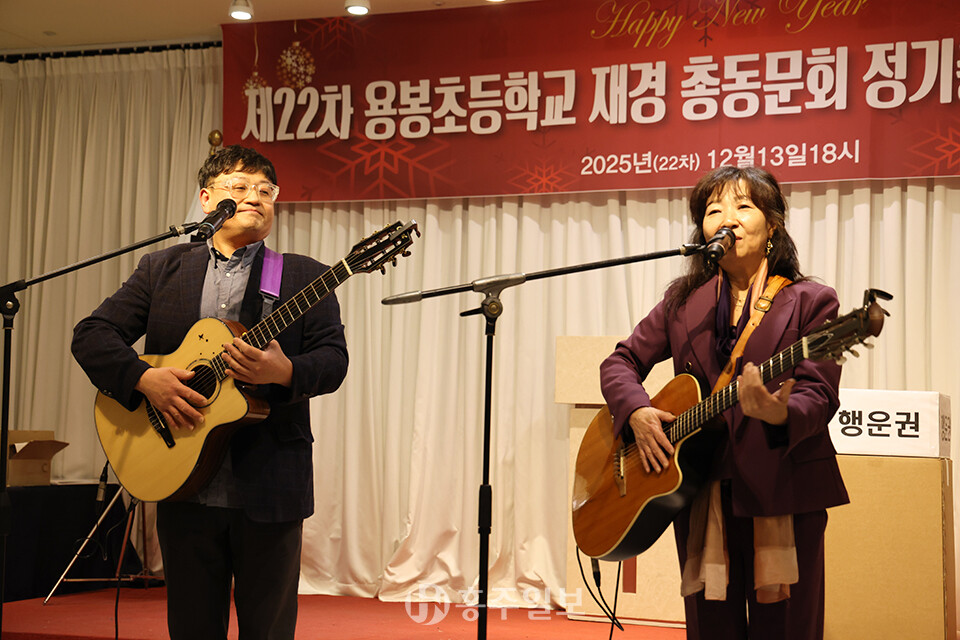 이날 행사에는 모교 관계자와 동문회 고문·자문위원, 각 기수 동문들이 함께해 자리를 빛냈으며, 용봉초등학교의 교육 여건과 학생 현황에 대한 소개도 함께 이뤄졌다. 이후 초대가수들의 감미로운 무대가 펼쳐지며 연말 송년의 분위기를 더했고, 동문들은 한 해를 돌아보며 친목과 화합의 시간을 이어갔다.