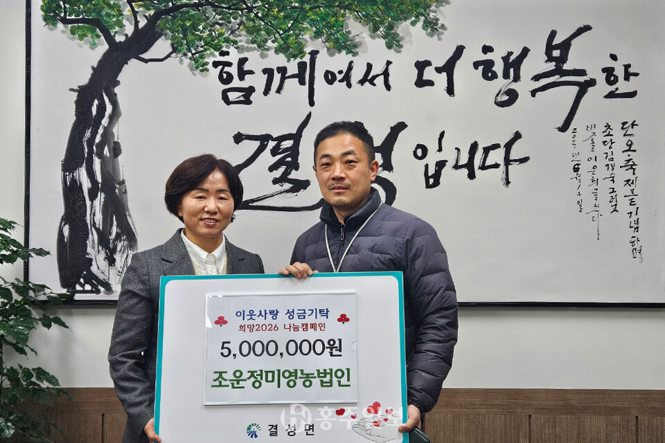 조운정미영농법인(대표 임재익)은 지난 11일 연말을 맞아 결성면에 이웃돕기 성금 500만원을 기탁했다. 성금은 충남사회복지공동모금회를 통해 결성면 지역 내 취약계층과 홀몸어르신, 긴급 위기가구 등 복지사업에 사용될 예정이다.