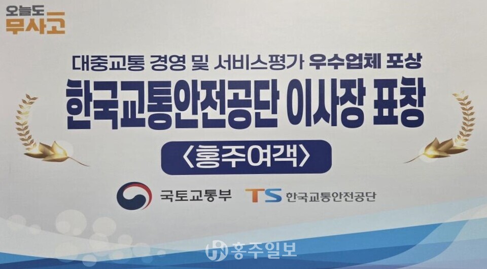 홍주여객은 지난달 19일 국토교통부와 한국교통안전공단 주관으로 서울 그랜드힐 컨벤션에서 열린 ‘대중교통 경영 및 서비스평가 및 시책평가 우수기관 시상식’에서 교통안전공단 이사장 표창을 수상했다.