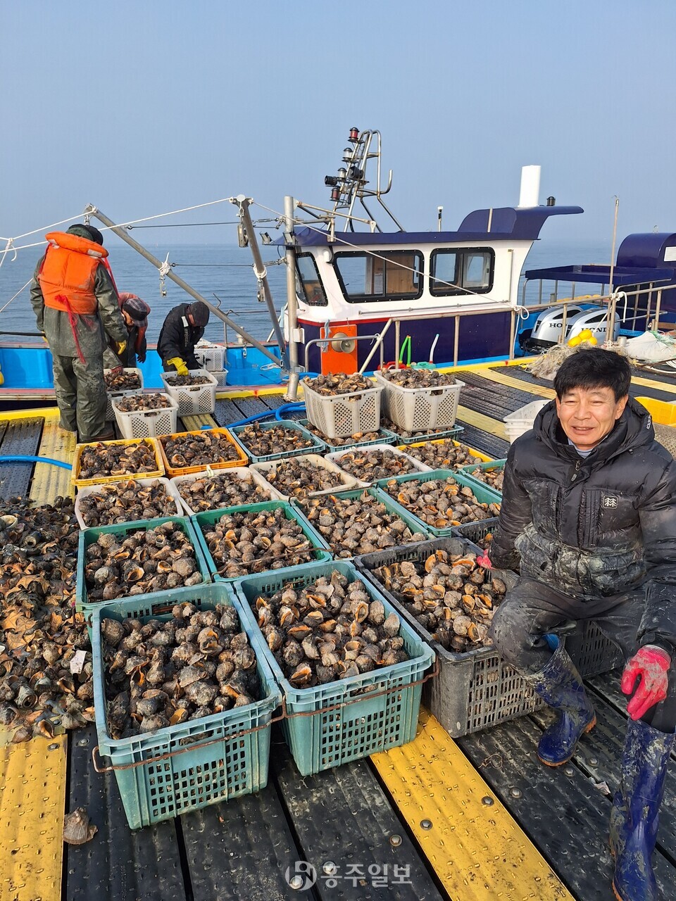 서부면 남당항 일대에서는 겨울철 새조개 축제가 한창인 가운데, 인근 천수만 죽도 주변 해역에서 참소라 조업이 본격화되고 있다. 어획량 증가 소식에 전국 수산물 판매 중개인들의 관심이 집중되고 있으며 어업인들은 맹추위도 잊은 채 연일 작업을 이어가고 있다.