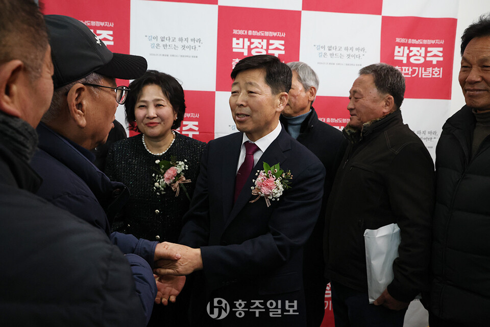 박정주 전 충남도 행정부지사는 인사말에서 “오늘은 제 인생의 한 장을 넘기고 새로운 출발선에 서는 날”이라고 밝혔다.