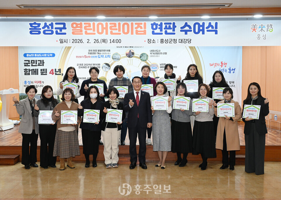 홍성군은 지난 26일 ‘열린어린이집’ 25개소를 대상으로 현판 수여식을 열고, 부모 참여와 지역사회 소통을 기반으로 한 보육환경 조성 의지를 밝혔다.<사진>