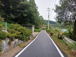 주민총회를 마치고 주민자치회장,구항면장,군수를 비롯한 주요 인물들이 기념촬영을 하고 있다.