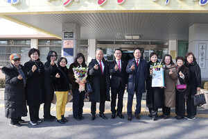 재경홍성군민회 사랑의 쌀·홍성사랑장학금 기탁식 후 참석자들이 군청 본관 앞에서 기념촬영을 하고 있다. 사진=김용환 인턴기자