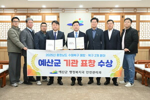 왼쪽부터 최대구 예산군수와 정윤 청운대학교 총장.