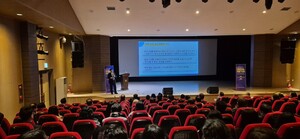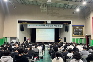 3학년 김주환 학생이 무대에서 자신의 꿈을 소개하고 있다.