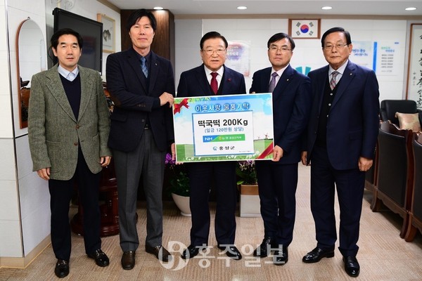 NH농협중앙회 홍성군지부(지부장 윤용주)는 지난 16일 설 명절을 앞두고 저소득층 및 어려운 이웃을 위해 떡국떡 200kg(120만원 상당)를 홍성군에 기탁해 따뜻한 사랑을 베풀어 훈훈함을 전했다.