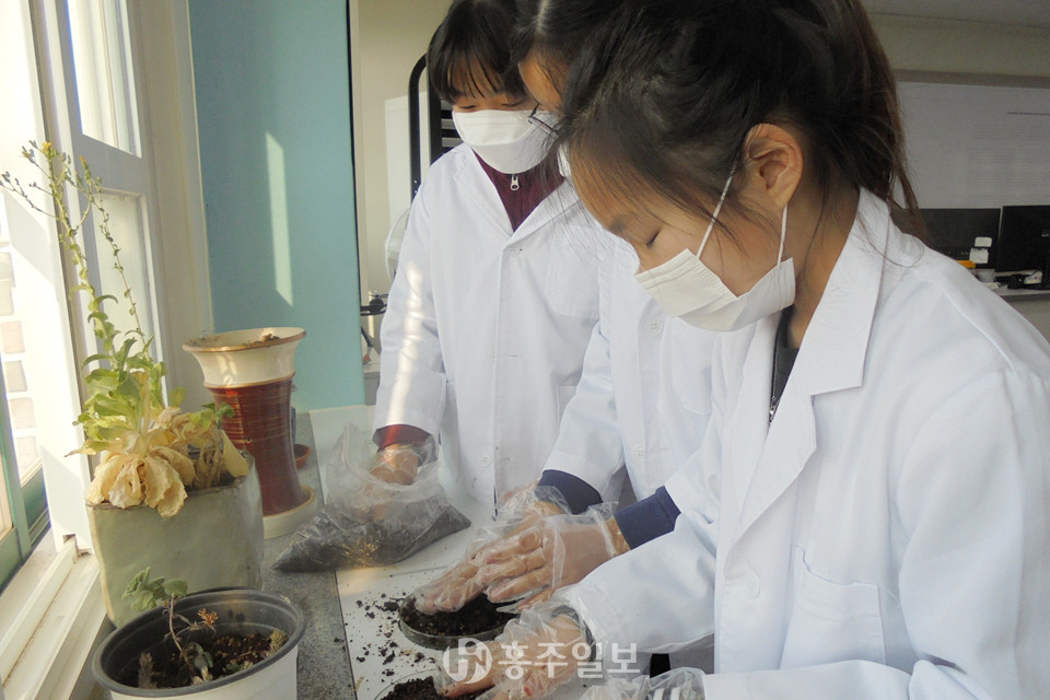 ‘씨앗아 힘내! 절임 씨앗의 생존 기간 탐구’라는 주제로 학생들은 일정 기간 소금에 절여진 씨앗의 보관과 싹트임을 탐구했다.<사진> 이 대회를 통해 학생들은 평소에 무심코 지나쳤던 식물에 대해 세심하게 관찰해보며 우리 생활에서 활용되는 생물에 대한 특징이 있는지를 탐구해보는 경험을 했다.