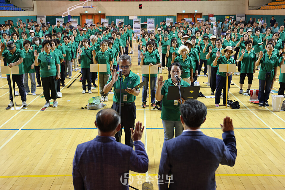 [홍주일보 홍성=한기원 기자] ㈔홍성군새마을회(회장 김건태)는 지난달 29일 홍주문화체육센터에서 읍면별 새마을지도자 1000여 명이 함께한 가운데 ‘2025년도 홍성군새마을지도자 하계수련대회’가 성황리에 개최됐다.