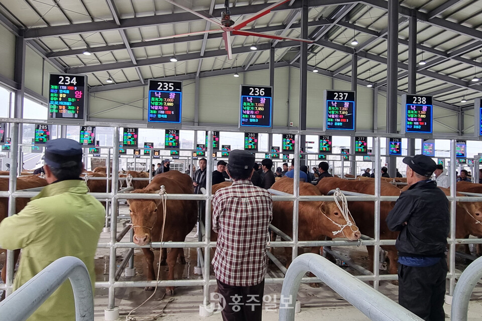 [홍주일보 예산=한기원 기자] 예산군은 지난 23일 추석 연휴를 앞두고 예산 송아지 경매시장<사진>에서 추석 전 마지막 큰 소 경매가 열린다고 밝혔다.