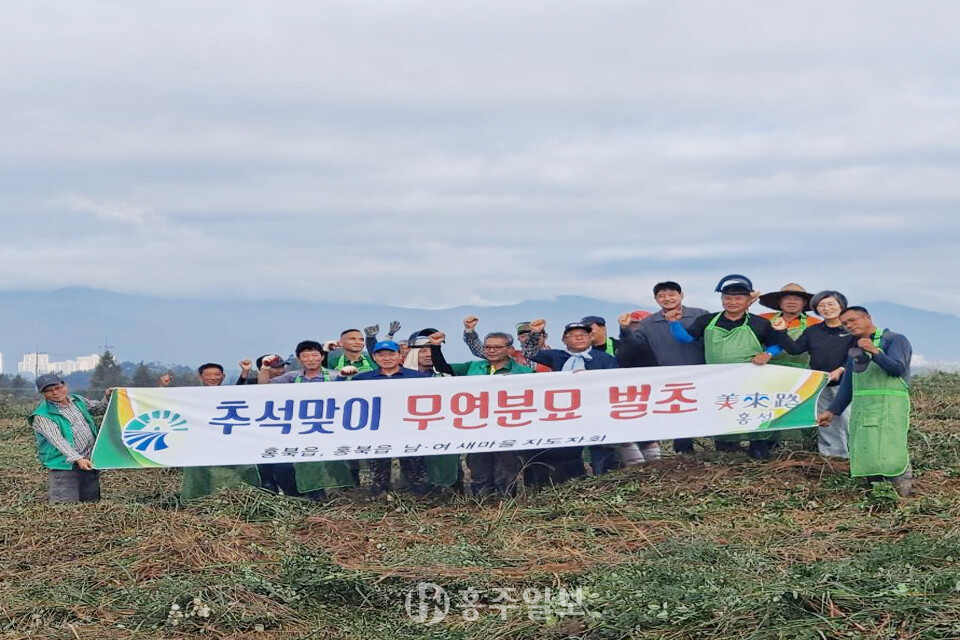 홍북읍은 지난 21일 추석 명절을 앞두고 홍북읍새마을지도자협의회(회장 박상신)의 회원 20여 명이 참여한 가운데 내덕리와 갈산리 공동묘지 일원에서 무연분묘 벌초 봉사활동을 펼쳤다고 밝혔다.