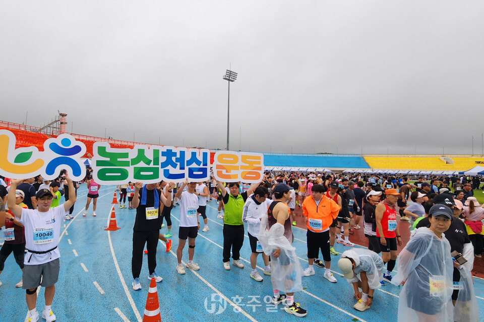 충남세종농협(본부장 정해웅)은 지난 19일 홍성 홍주종합경기장에서 열린 제25회 홍성마라톤대회에서 농업의 가치를 알리기 위한 농심천심(農心天心)운동 충남 서부권 발대식을 갖고 범국민 홍보 캠페인 활동을 펼쳤다.