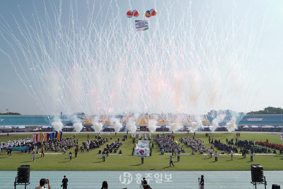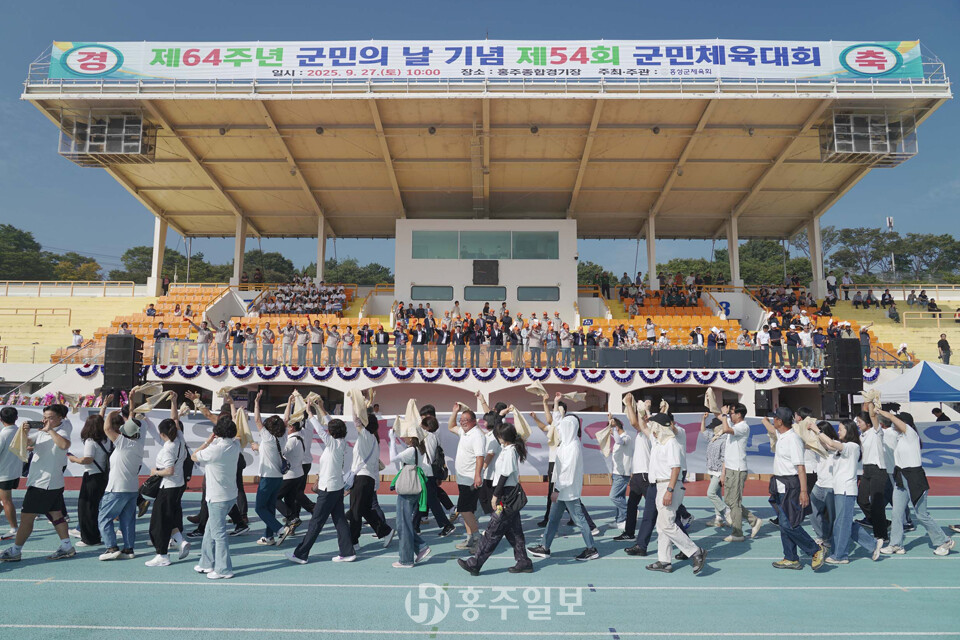 [홍주일보 홍성=한기원 기자] 지난달 27일 제64주년 군민의 날을 기념해 홍주종합경기장에서 제54회 군민체육대회를 5000여 명의 군민들이 참여한 가운데 성황리에 개최했다.<사진>