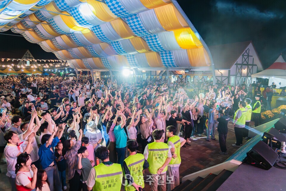 비는 내렸지만 맥주와 음악은 멈추지 않았다. 밤이 깊어질수록 ‘옥토버나이트’의 무대는 뜨거워졌고, 독일 소시지를 손에 든 사람들은 함께 노래하고 춤췄다. 맥주잔이 부딪히는 소리, 세대와 국적을 초월한 음악, 방문객들의 건배 물결은 남해의 밤을 하나로 묶었다.