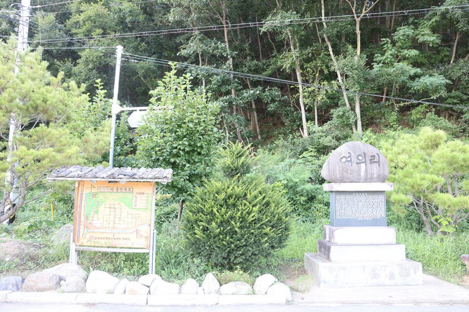 여의리(如意里)마을 자랑비에는 ‘예로부터 산자수명한 곳으로 이름이 나 있으며 동편으로 우뚝 솟은 갈모봉(葛冒峰)을 끼고 마을 우측으로 남대천 맑은 물이 전설처럼 흐르고 있어 훈훈한 고장의 인심과 아름다운 풍치의 조화를 더해 주고 있다.