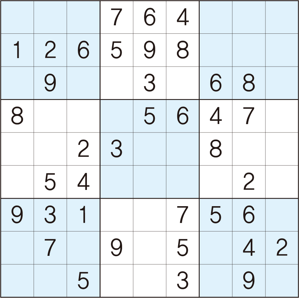 3. 큰 정사각형(9x9) 안에 있는 작은 정사각형(3x3) 안에는 숫자 1~9가 각 한 번씩 들어간다.
