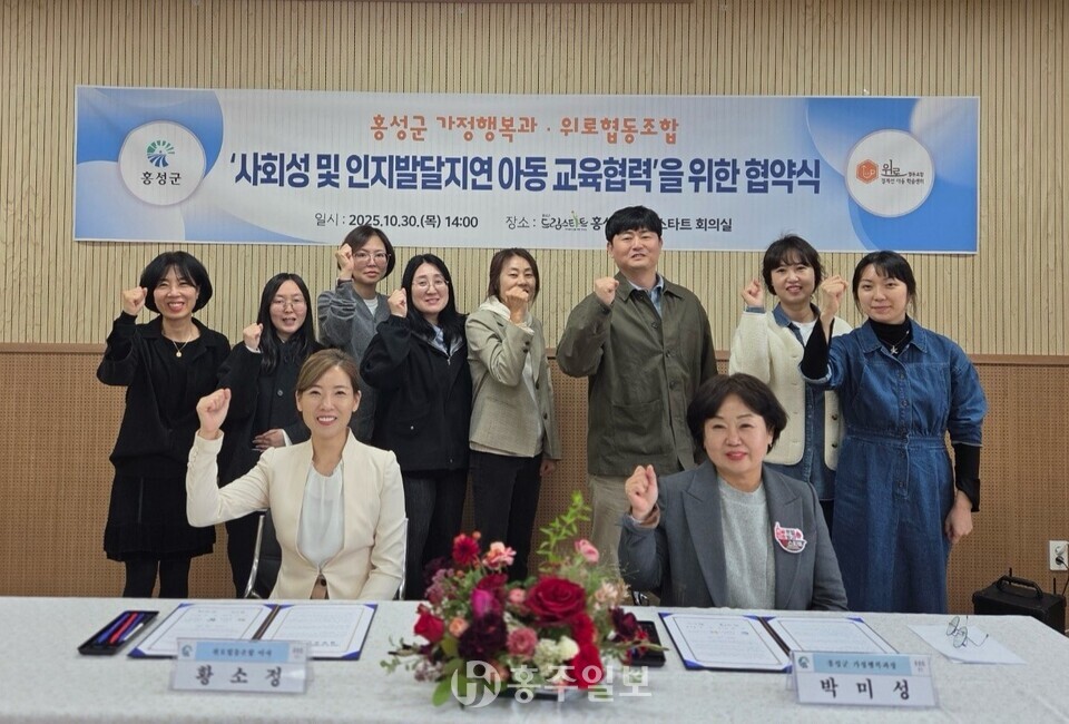 홍성군은 지난달 30일 드림스타트 회의실에서 홍성위로협동조합과 홍성군드림스타트 ‘사회성 및 인지발달지연아동 교육협력’을 위한 업무협약을 체결했다.<사진>
