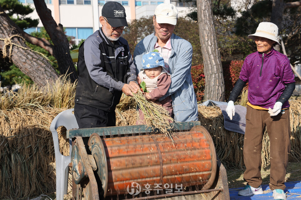 특히 ‘유기농 테마파크’는 ‘자연 놀이터, 가을로 만든 놀이터’를 테마로 가족 단위 방문객들의 발길이 끊이지 않았다. 아이들은 직접 고구마·감자·당근을 수확하고 벼 탈곡, 방아찧기, 토끼와 거북이 먹이주기 등을 체험하며 시골 농촌의 정취를 느꼈다. 논생물 체험장에서는 메기·미꾸라지 등을 관찰하며 도시 아이들이 접하기 어려운 농촌 생태를 배우는 교육의 장이 됐다.