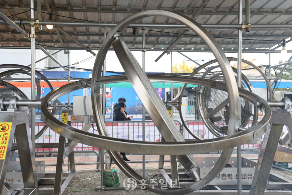 올해 홍성글바페의 시그니처 공간은 단연 ‘놀이기구형 대형 그릴존’이었다. △대관람차 △바이킹 △무중력 △회전목마 △스핀 △열기구 △회전 △닭바비큐 등 여덟 종의 새롭게 제작된 대형 바비큐 그릴은 관람객의 시선을 사로잡는 독창적 시도로 주목받았으나, 일부에서는 실질적 운영효율에 대한 비판도 나왔다.