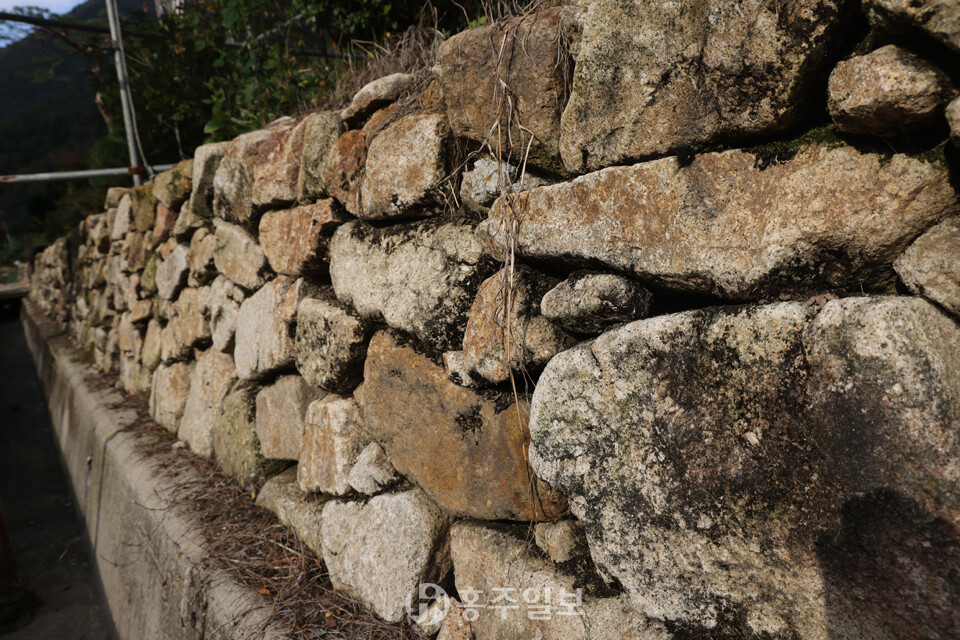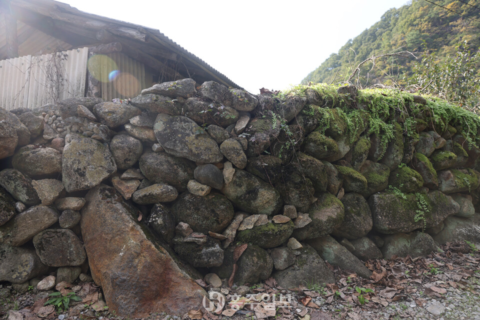 돌담은 생활과 자연의 조화를 이루는 방식으로 집과 밭, 길을 구분하는 경계 역할을 하면서도 마을의 풍경을 아늑하게 빚어내고 있다. 돌담의 돌과 돌 사이사이에 자라는 풀과 이끼, 그리고 햇살이 어우러져 매우 따뜻한 산골의 정취를 느낄 수 있다. 제법 큰 자연석 강돌을 이용해서는 계곡이나 집터의 축대도 쌓았고 일부는 밭담으로 쌓은 모습도 보인다.