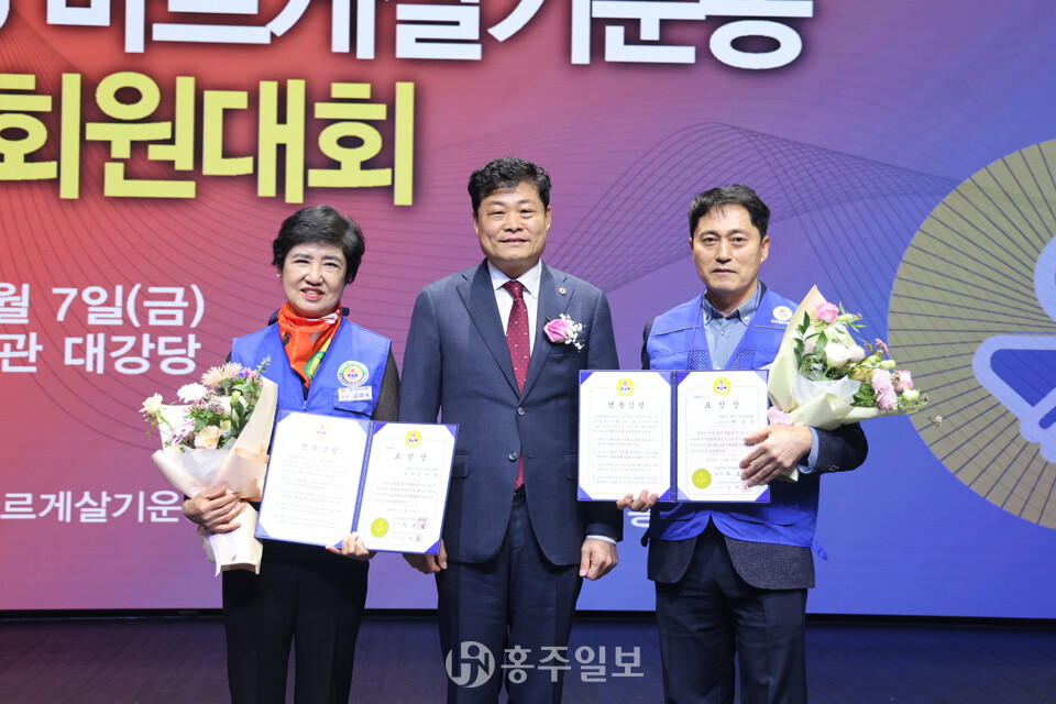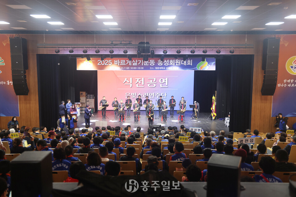 [홍주일보 홍성=김용환 인턴기자] 바르게살기운동 홍성군협의회(회장 전헌수)는 지난 8일 청운대학교 신애관에서 ‘함께할 미래, 빛나는 바르게살기운동’을 슬로건으로 ‘2025 바르게살기운동 홍성군회원대회’를 성황리에 마쳤다.