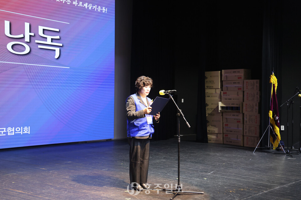 행사는 △내빈소개 △개회선언 △국민의례 △행동강령 낭독 △바르게살기운동 홍성군협의회 활동 영상 상영 △유공자 시상 △대회사·격려사·축사·환영사 △결의문 낭독 △기념촬영 순으로 진행됐다.