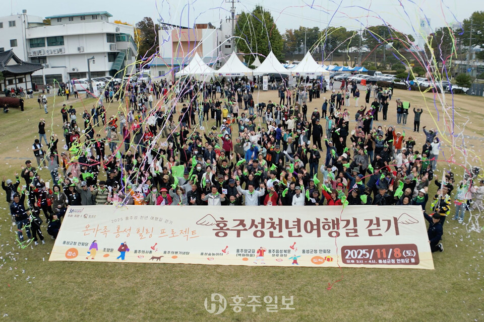 [홍주일보 홍성=김용환 인턴기자] 지난 8일 군청 안회당 뜰에서 열린 ‘2025 홍주성천년여행길 걷기 대회’에는 다양한 연령대의 참가자 700여 명이 함꼐 걷는 진풍경이 펼쳐졌다.