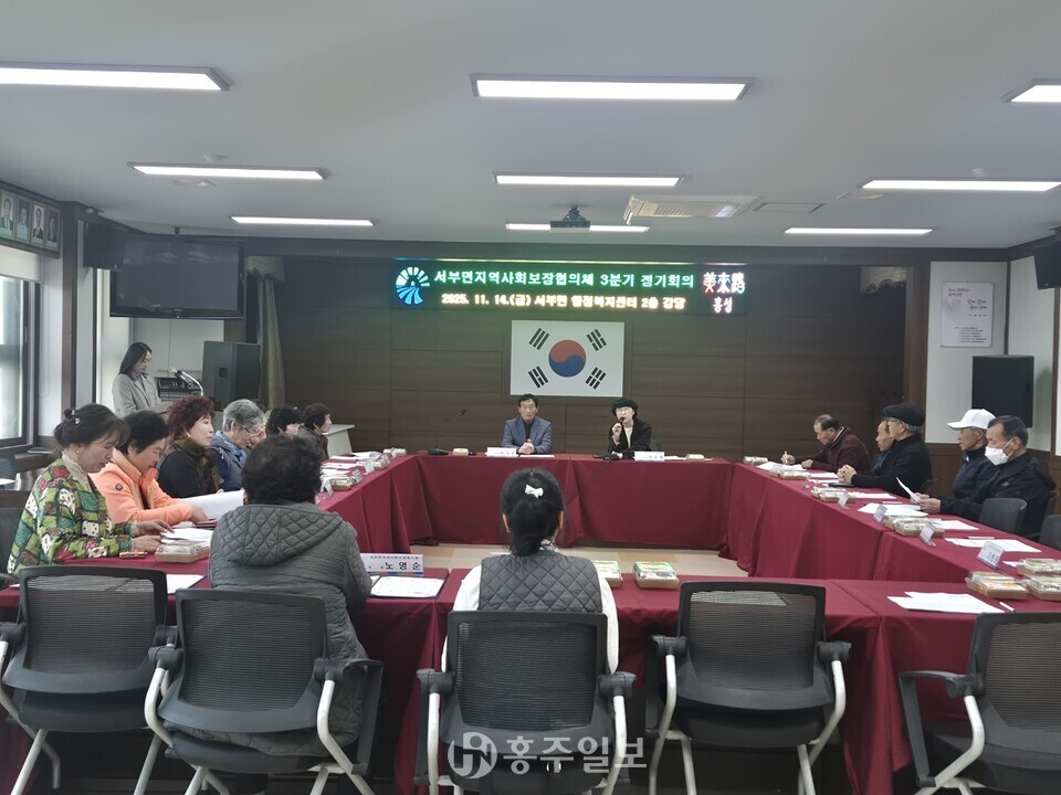 서부면지역사회보장협의체(공공위원장 이순화, 민간위원장 이서준)는 지난 14일 서부면행정복지센터 회의실에서 ‘2025년 4분기 지역사회보장협의체 회의’를 개최하고 취약계층을 위한 겨울철 복지 지원사업을 집중 논의했다.<사진>