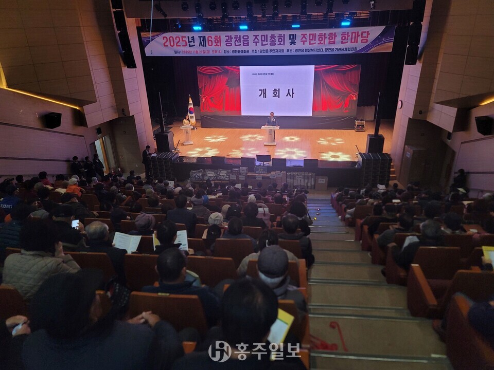 광천읍주민자치회(회장 김노성)는 지난 21일 광천읍 문예회관에서 500여 명의 읍민들이 참여한 가운데 ‘2025년 제6회 광천읍 주민총회·주민화합 한마당’을 성황리에 마쳤다.<사진>