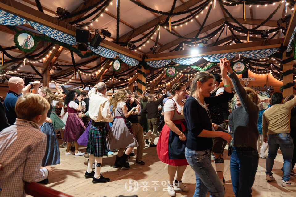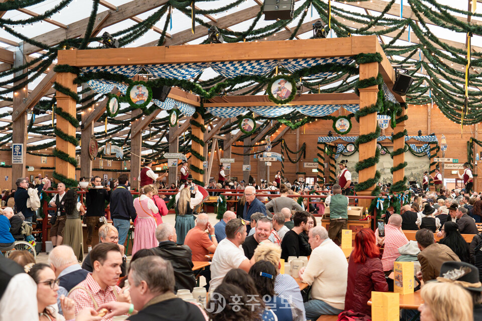 1L가 담기는 거대한 잔을 한 손에 들고 어느새 친구가 된 옆 테이블과도 함께 ‘프로스트(Prost·건배)’를 외치는 색다른 경험도 할 수 있다. 전통 음악과 춤, 파티 음악, 밴드 공연 등 분위기를 끌어올리는 다양한 볼거리도 있다. 클럽을 방불케 하며 신나는 음악에 맞춰 뛰어노는 텐트도 있는 등 각 텐트별 고유한 분위기와 디자인이 있다.