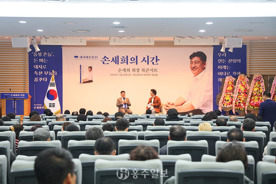 [홍주일보 홍성=김용환 인턴기자] 손세희 전 대한한돈협회장<사진>이 임기를 마무리하며, 지난 여정을 담은 저서 《돼지대통령21, 손세희의 시간》 출간을 기념해 지난달 29일 청운대학교 청운홀에서 북콘서트를 열었다.