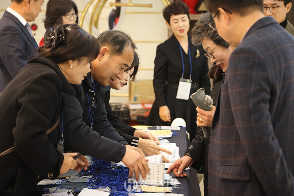 또한 향우회 임원과 내빈이 무대로 나와 축배를 들고 케익을 절단하며 향우회 창립 56주년 정기총회와 송년의 밤 행사의 성공적인 개최를 자축했다.