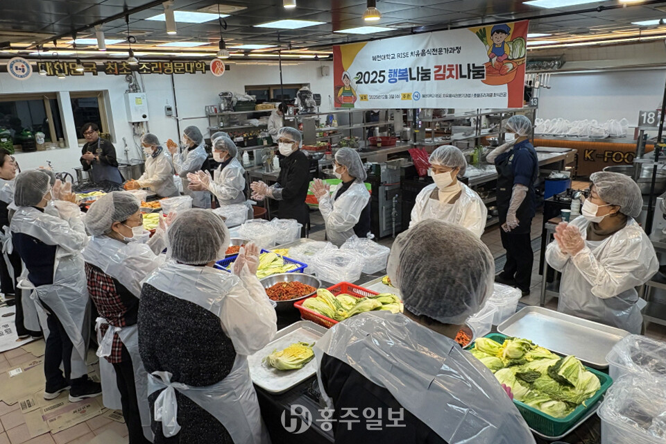 혜전대학교(총장 이혜숙) RISE 사업으로 운영중인 치유음식과정 학생들과 혜전대 재학생들이 지난 3일 이웃을 위한 김장 나눔 봉사활동에 나섰다. 이날 김장김치는 독거노인, 취약가정, 복지 사각지대의 이웃들에게 전달될 예정이다.