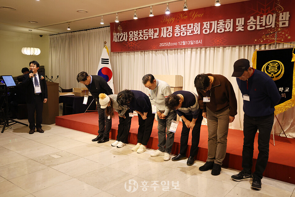[홍주일보 서울=한기원 기자] 재경용봉초등학교총동문회(이임회장 이영철·취임회장 임효진)가 한 해를 마무리하며 ‘제22차 정기총회와 송년의 밤’ 행사를 열고, 회장 이·취임식을 통해 새로운 집행부 출범을 알렸다.