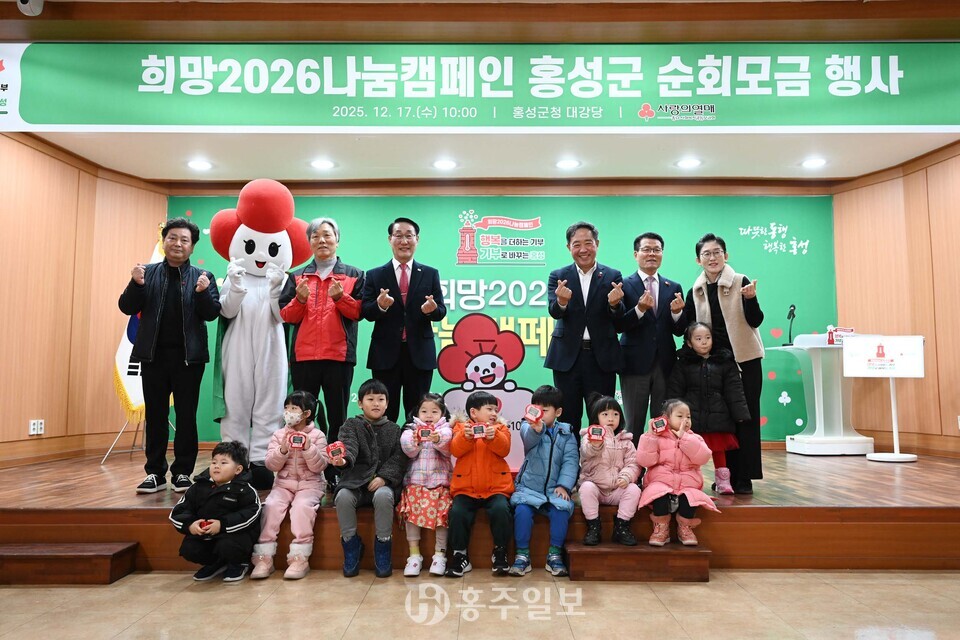 홍성군은 충남사회복지공동모금회(회장 성우종)와 공동으로 지난 17일 군청 대강당에서 ‘희망2026 나눔캠페인’ 순회모금 행사를 열고 지역 나눔 확산에 나섰다.<사진>