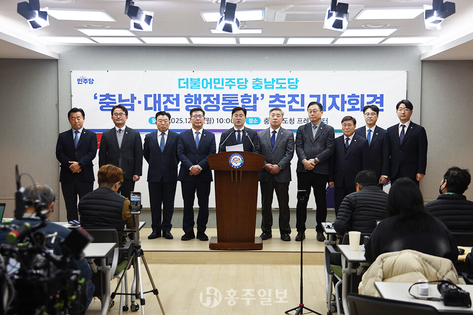 [홍주일보 김용환 인턴기자] 더불어민주당 충남도당(위원장 이정문)이 충남·대전 행정통합 추진을 공식화하며, 수도권 일극 구조를 넘어 국가 성장 구조를 전환하겠다는 구상을 밝혔다. 내년 1월 주민의견 수렴과 법안논의를 거쳐, 2월 말~3월 초 충남·대전 행정통합 특별법 처리를 추진하겠다는 계획이다.