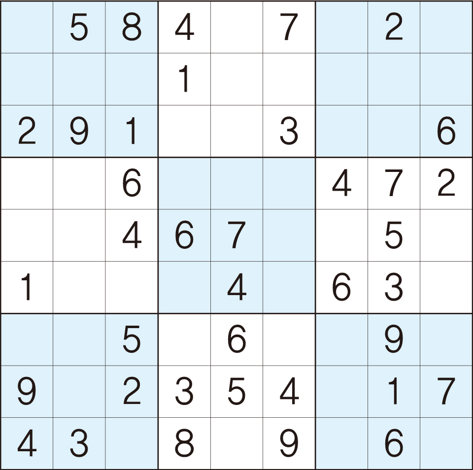3. 큰 정사각형(9x9) 안에 있는 작은 정사각형(3x3) 안에는 숫자 1~9가 각 한 번씩 들어간다.