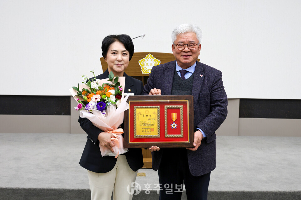 김은미 홍성군의회 부의장이 지방자치 발전과 정책 성과를 인정받아 31일 당진시의회 본회의장에서 열린 시상식에서 ‘국회의정저널 의정대상’을 수상잇따라 수상의 영예를 안았다.<사진>