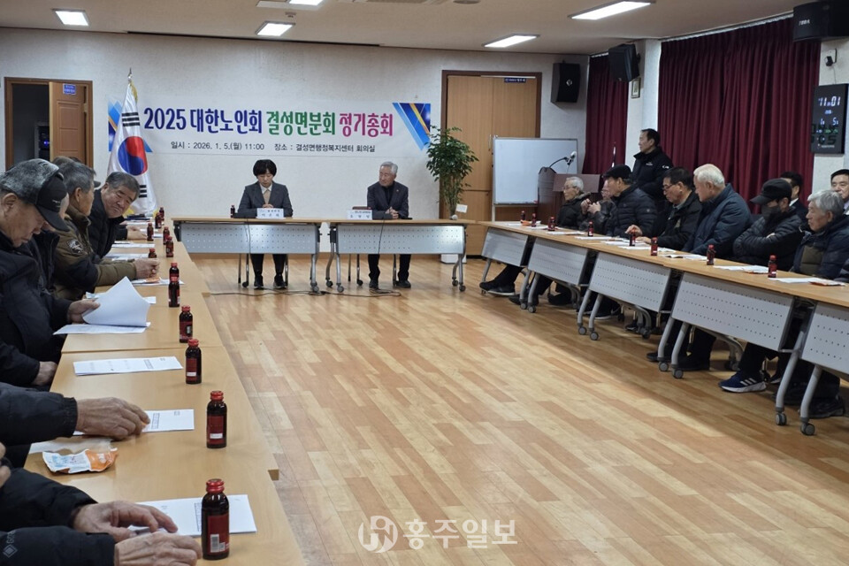 대한노인회 결성면분회(회장 조광성)는 지난 5일 결성면 행정복지센터 회의실에서 정기총회를 개최했다. 회의에서는 2025년 주요사업 실적, 2026년 주요사업 계획, 분회 운영 활성화에 대한 토의와 건의사항 등을 논의했다.