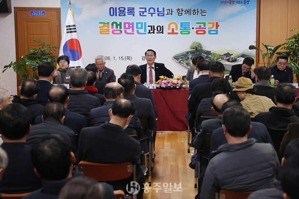 [홍주일보 홍성=김용환 인턴기자] 이용록 홍성군수의 병오년(丙午年) 새해 읍·면 순방이 이어지는 가운데, 지난 15일 오전 홍동면, 오후 결성면을 차례로 방문해 주민들과 지역 현안을 논의했다. 이용록 군수는 이날 군정 운영 방향을 설명하고, 주민과 직접 소통하며 지역 현안 해결 의지를 밝혔다.