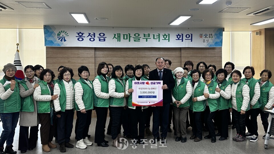 홍성읍새마을부녀회(회장 김종예)는 지난 19일 홍성읍행정복지센터를 방문해 ‘희망2026 나눔캠페인’의 일환으로 이웃돕기 성금 300만 원을 기탁하며 지역사회에 따뜻한 나눔을 실천했다.<사진>