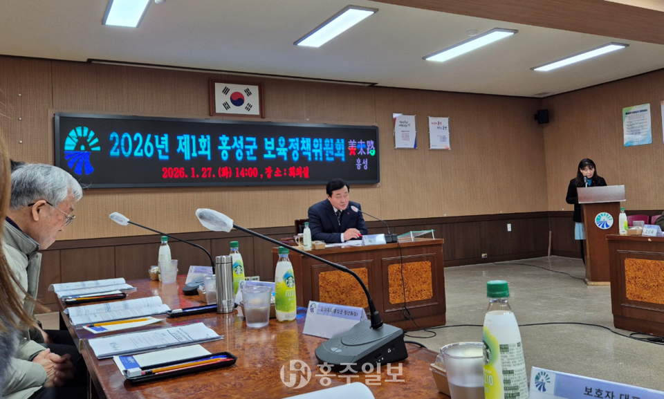 홍성군은 지난 27일 군청 회의실에서 ‘2026년 제1회 홍성군 보육정책위원회’를 열고, 질 높은 보육서비스 제공을 위한 주요 정책 방향을 논의했다.<사진>